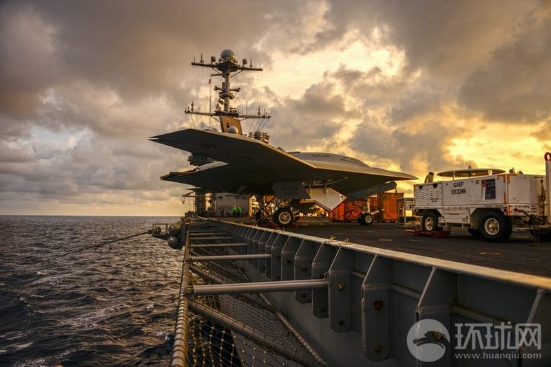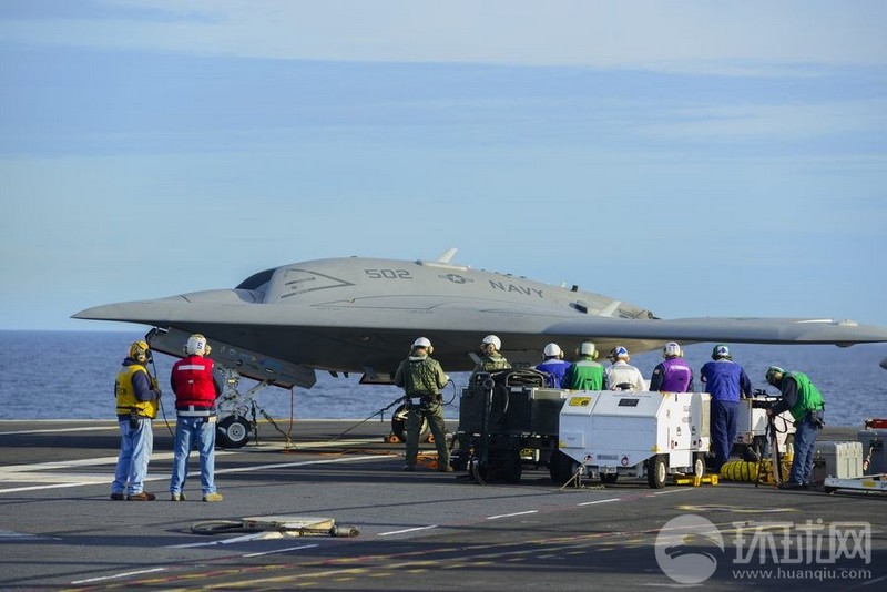 【環球網綜合報道】據美國海軍網報道,12月7日,在大西洋上航行的美國海軍杜魯門號航母(CVN-75)上,來自美國美國海軍無人戰斗機項目的工程師們對該航母搭載的X-47B無人艦載戰斗機進行了一系列測試。測試的項目包括將X-47B無人機從機庫轉移到甲板、無人機在航母甲板上的停放實驗等,整個測試過程從白天持續到黑夜。