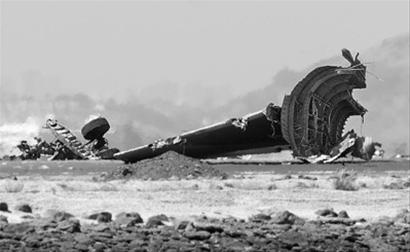 一些目擊者告訴當地電視臺,這架波音777-200型客機最初降落正常,后因起落架出現異常,機尾著地,一些飛機部件脫落,飛機偏離跑道,起火燃燒。