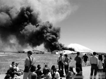 事發時,微博網友“@藝書yishu”正好在舊金山國際機場航站樓內候機,“就我們從航站樓里看到的來說,一開始落地后先是揚塵,然后有小股黑煙,但很快被撲滅。大約十分鐘之后才有第二次著火,濃煙滾滾。有人說看到落地前飛機身后就有很長一條亮線。 ”