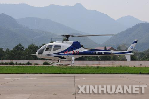資料圖片: 2011年9月1日,國產(chǎn)2噸級輕型民用直升機AC311正在執(zhí)行“自轉著陸”科目試飛。