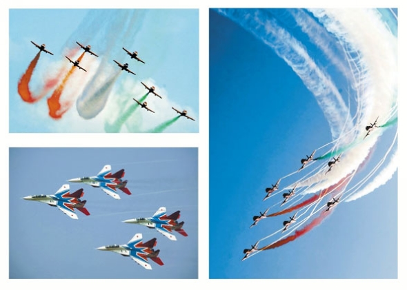 成立于1991年的“勇士”飛行表演隊是俄空軍的外交型表演隊,也是世界上惟一一支使用重型戰斗機進行表演的飛行隊。它采用蘇-27UB型戰斗機,6架空中表演飛機重達150噸,他們的演出也因此受到世界各地觀眾的熱烈歡迎。