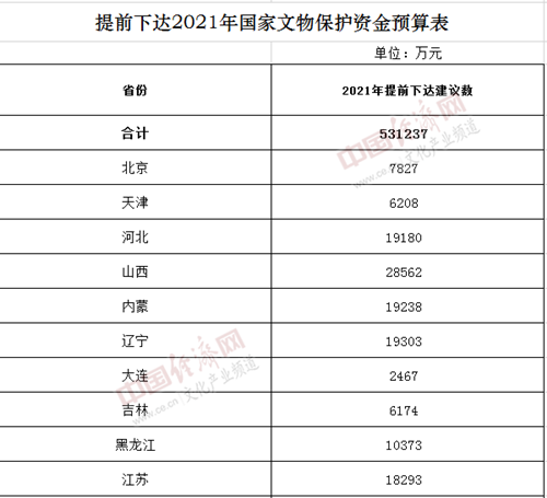 附件:提前下達2021年國家文物保護資金預算表