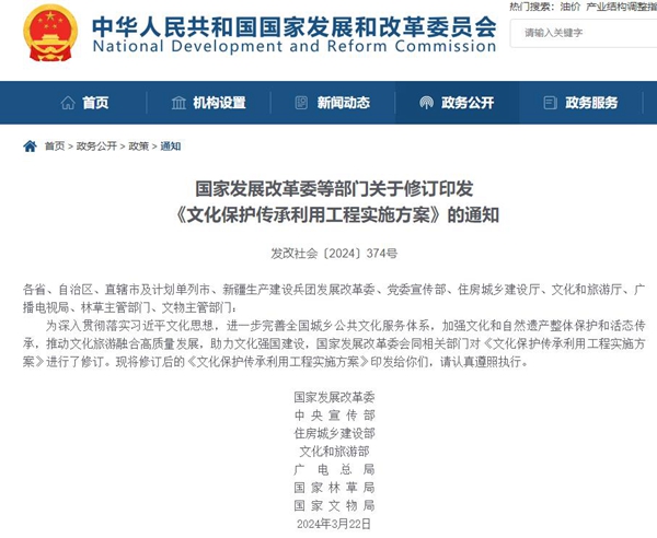 中國經(jīng)濟(jì)網(wǎng)北京4月8日訊(記者 成琪)據(jù)國家發(fā)改委網(wǎng)站4月7日消息,為進(jìn)一步完善全國城鄉(xiāng)公共文化服務(wù)體系,加強(qiáng)文化和自然遺產(chǎn)整體保護(hù)和活態(tài)傳承,推動(dòng)文化旅游融合高質(zhì)量發(fā)展,助力文化強(qiáng)國建設(shè),國家發(fā)展改革委會(huì)同相關(guān)部門對《文化保護(hù)傳承利用工程實(shí)施方案》(以下簡稱“《方案》”)進(jìn)行了修訂。《方案》明確,要依托國家級(jí)資源新建或改擴(kuò)建一批重大文化設(shè)施,提升公共文化服務(wù)水平,促進(jìn)優(yōu)秀傳統(tǒng)文化和寶貴自然遺產(chǎn)整體保護(hù)和活態(tài)傳承,推動(dòng)高質(zhì)量發(fā)展和創(chuàng)造高品質(zhì)生活相得益彰。
