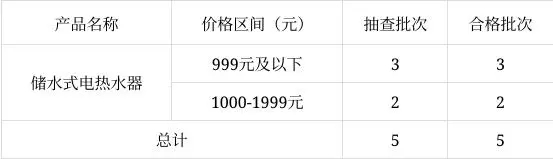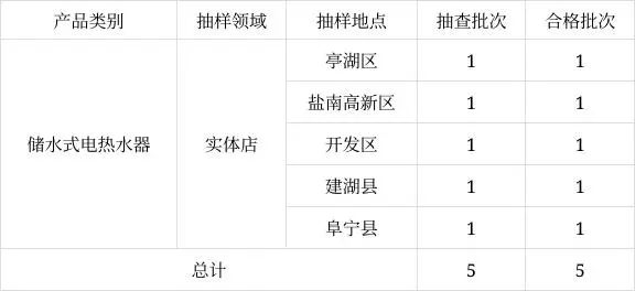 2023年度鹽城市市場監督管理局委托江蘇威諾檢測技術有限公司組織實施儲水式電熱水器產品市級監督抽查。本次抽查計劃5批次,抽到5批次,經檢驗合格5批次。
