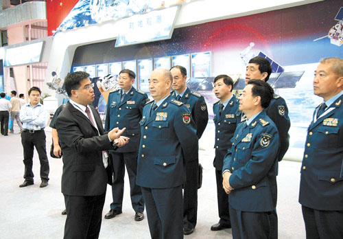 2010年的珠海航展,中國航天科技集團公司以240余項最新科技成果,向航空航天界專業人士和社會公眾奉上了一場饕餮盛宴。此間,中央軍委委員、空軍司令員許其亮上將,空軍政委鄧昌友,二炮副政委楊立順、國家國防科工局副局長胡亞楓,中國文聯黨組書記、副主席胡振民,以及集團公司用戶單位有關領導,到中國航天科技集團公司展區,參觀了天宮一號目標飛行器、月球探測衛星、天地一體化沙盤和北斗導航衛星星座等展品,并對集團公司近年來取得的成績給予了充分肯定。