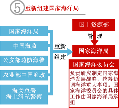 - 解析:方案提出,將現(xiàn)國(guó)家海洋局及其中國(guó)海監(jiān)、公安部邊防海警、農(nóng)業(yè)部中國(guó)漁政、海關(guān)總署海上緝私警察的隊(duì)伍...